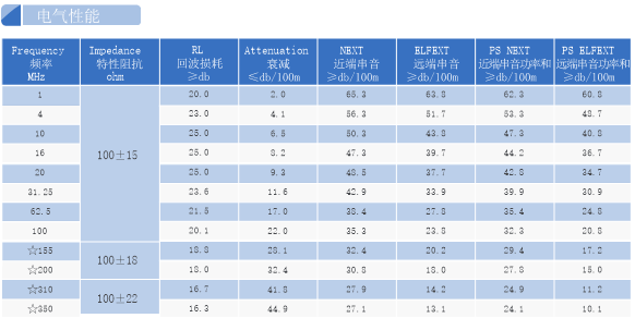 各种参数满足ISO/IEC,TIA/EIA超五类标准